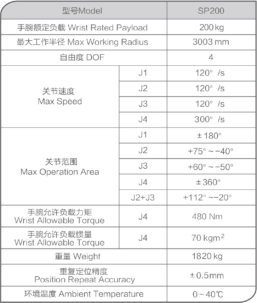网站首页 > 产品展示 > 码垛机器人 > 新时达SP200 4轴 负载200kg 工作域3003mm 搬运/码垛 码垛机器人 2023-05-27 机器人网 0 百度一下 2023-05-27 机器人网 0 百度一下 适合行业 码垛机器人 发布作者 机器人网 最近更新 2023-05-27 18:18:34 概述: 文章详情 品牌名称STEP 产品简介SP系列搬运码垛工业机器人采用4轴设计,具有结构精简、故障率低、操作方便、能耗低、占地面积少等优点。强大的手腕负载能力能轻而易举的完成搬运任务,该搬运机器人主要适用于负载较大、大范围工作场合。SP200特性:手腕负载能力为200kg,可达工作半径为3039mm。 产品特点工作空间大性能稳定运行速度快通用性能佳模块化的机械结构设计 产品应用——物料搬运、码垛更大的灵活性,更稳定的性能,更低的能耗;具有高速性能的较大化吞吐量;超长的工作运行时间;固定的自动化。 联系我们: 上海新时达机器人有限公司 ☉本站某些信息具有时效性,若有错误或已失效,需要更改请留言修改
