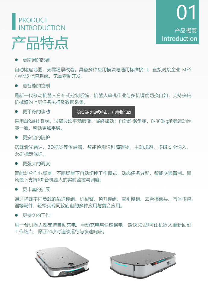 相关信息 锐曼拖地机器人(蜗牛洁霸)2023-05-27 18:44:53 欧铠复合机器人 激光SLAM导航 负载500kg 精度±10mm 复合机器人2023-05-27 18:43:31 智亿 06A-090 6轴 负载6kg 精度±0.08mm 搬运、上下料通用机器人2023-05-27 18:43:29 巨轮 JLRB300 6轴 负载300kg 精度±0.3mm 焊接、码垛通用机器人2023-05-27 18:43:26 卓林 CR5-1500 6轴 负载5kg 精度±0.05mm 搬运、码垛、上下料、焊接通用机器人2023-05-27 18:43:25 卓林 CR25-1900 6轴 负载25kg 精度±0.05mm 搬运、码垛、上下料、焊接通用机器人2023-05-27 18:43:25