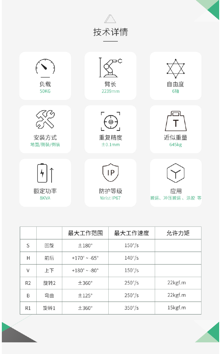 相关信息 大研机器人 六轴机器人(UMINI系列/OSAKA系列) U6-0205/R6-0205 装配机器人2023-05-27 18:43:26 大研机器人 六轴机器人(UMINI系列/OSAKA系列) U6-0607/R6-0607 装配机器人2023-05-27 18:43:25 大研机器人 四轴机器人(UMINI系列/OSAKA系列) U4-0405/R4-0405 装配机器人2023-05-27 18:28:20 三菱电机RV-2FRL 6轴 负载2kg工作域 649mm 搬运,装配装配机器人2023-05-27 18:19:39 三菱电机RV-2FR 6轴 负载2kg工作域 504mm 搬运,装配装配机器人2023-05-27 18:19:39 三菱电机RV-4FRL 6轴 负载4kg工作域649mm 搬运,装配装配机器人2023-05-27 18:19:38