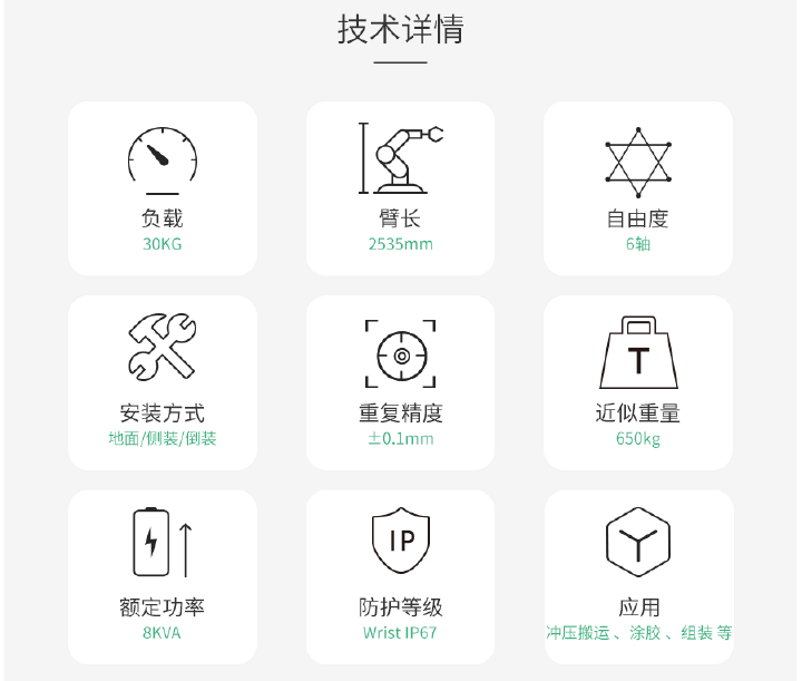 相关信息 大研机器人 六轴机器人(UMINI系列/OSAKA系列) U6-0205/R6-0205 装配机器人2023-05-27 18:43:26 大研机器人 六轴机器人(UMINI系列/OSAKA系列) U6-0607/R6-0607 装配机器人2023-05-27 18:43:25 大研机器人 四轴机器人(UMINI系列/OSAKA系列) U4-0405/R4-0405 装配机器人2023-05-27 18:28:20 三菱电机RV-2FRL 6轴 负载2kg工作域 649mm 搬运,装配装配机器人2023-05-27 18:19:39 三菱电机RV-2FR 6轴 负载2kg工作域 504mm 搬运,装配装配机器人2023-05-27 18:19:39 三菱电机RV-4FRL 6轴 负载4kg工作域649mm 搬运,装配装配机器人2023-05-27 18:19:38