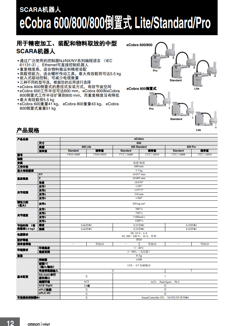 网站首页 > 产品展示 > 工业机器人 > 欧姆龙eCobra 600 4轴 负载 5.5kg工作域800mm 搬运,装配Scara机器人 2023-05-27 机器人网 0 百度一下 2023-05-27 机器人网 0 百度一下 适合行业 工业机器人 发布作者 机器人网 最近更新 2023-05-27 18:19:59 概述: 文章详情 品牌名称OMRON 联系我们: 欧姆龙自动化(中国)有限公司 ☉本站某些信息具有时效性,若有错误或已失效,需要更改请留言修改