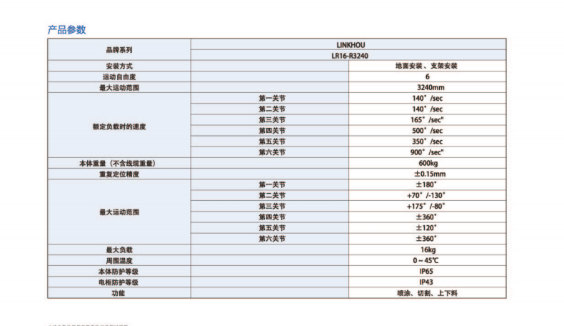 网站首页 > 产品展示 > 工业机器人 > 灵猴LR16-R3240 6轴 负载16kg工作域3240mm 切割,上下料,喷涂 多功能机器人 2023-05-27 机器人网 0 百度一下 2023-05-27 机器人网 0 百度一下 适合行业 工业机器人 发布作者 机器人网 最近更新 2023-05-27 18:20:14 概述: 文章详情 品牌名称LiNKHOU 联系我们: 苏州灵猴机器人有限公司 ☉本站某些信息具有时效性,若有错误或已失效,需要更改请留言修改