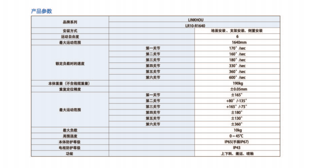 网站首页 > 产品展示 > 工业机器人 > 灵猴LR10-R1640 6轴 负载10kg工作域1640mm 上下料,搬运,喷涂 多功能机器人 2023-05-27 机器人网 0 百度一下 2023-05-27 机器人网 0 百度一下 适合行业 工业机器人 发布作者 机器人网 最近更新 2023-05-27 18:20:15 概述: 文章详情 品牌名称LiNKHOU 联系我们: 苏州灵猴机器人有限公司 ☉本站某些信息具有时效性,若有错误或已失效,需要更改请留言修改