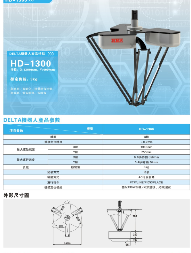 网站首页 > 产品展示 > 工业机器人 > 凯宝HD-1300 3轴 负载3kg工作域1300mm 搬运,包装,拾料Delta机器人 2023-05-27 机器人网 0 百度一下 2023-05-27 机器人网 0 百度一下 适合行业 工业机器人 发布作者 机器人网 最近更新 2023-05-27 18:20:34 概述: 文章详情 品牌名称HBR 联系我们: 广东凯宝机器人科技有限公司 ☉本站某些信息具有时效性,若有错误或已失效,需要更改请留言修改