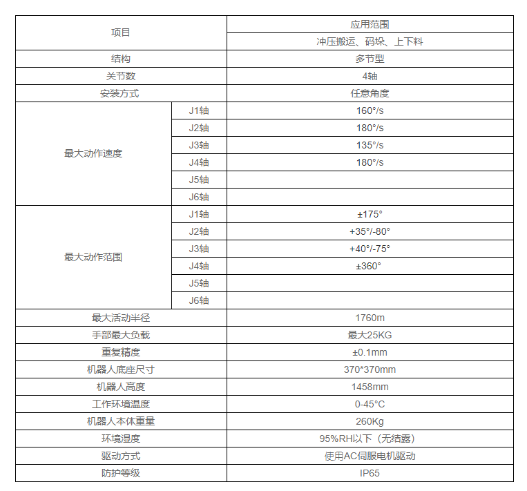 SF25-K1760搬运机器人技术参数: