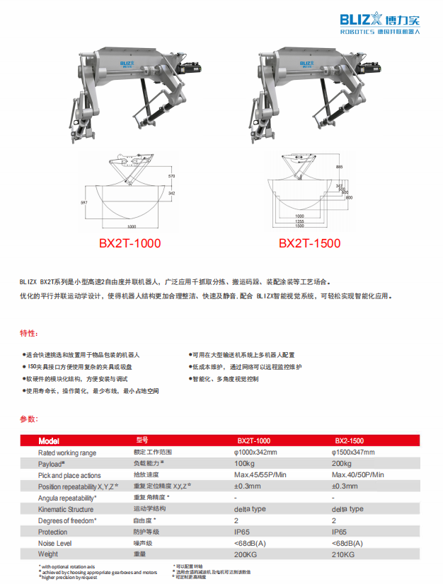 网站首页 > 产品展示 > 工业机器人 > 博力实BX2T-1000 2轴 负载100kg工作域1000mm 装配、搬运、包装、上下料、码垛Delta机器人 2023-05-27 机器人网 0 百度一下 2023-05-27 机器人网 0 百度一下 适合行业 工业机器人 发布作者 机器人网 最近更新 2023-05-27 18:21:30 概述: 文章详情 品牌名称BLIZ 联系我们: 博力实机器人(上海)有限公司 ☉本站某些信息具有时效性,若有错误或已失效,需要更改请留言修改