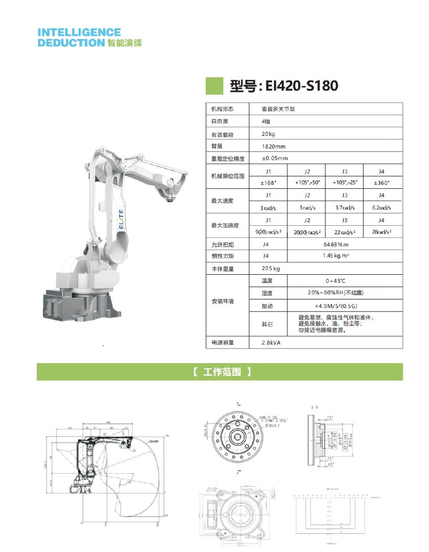 网站首页 > 产品展示 > 工业机器人 > 艾利特EI420-S180 4轴 负载20kg工作域1820mm 搬运工业机器人 2023-05-27 机器人网 0 百度一下 2023-05-27 机器人网 0 百度一下 适合行业 工业机器人 发布作者 机器人网 最近更新 2023-05-27 18:21:46 概述: 文章详情 品牌名称艾利特 联系我们: 苏州艾利特机器人有限公司 ☉本站某些信息具有时效性,若有错误或已失效,需要更改请留言修改