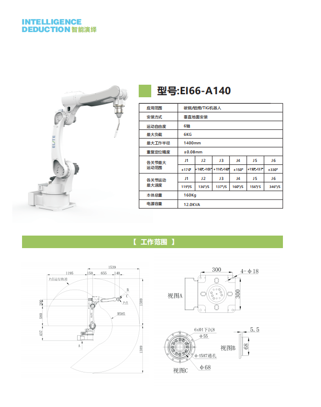 轴数6轴 | 精度0.08mm | 工作域2100mm |