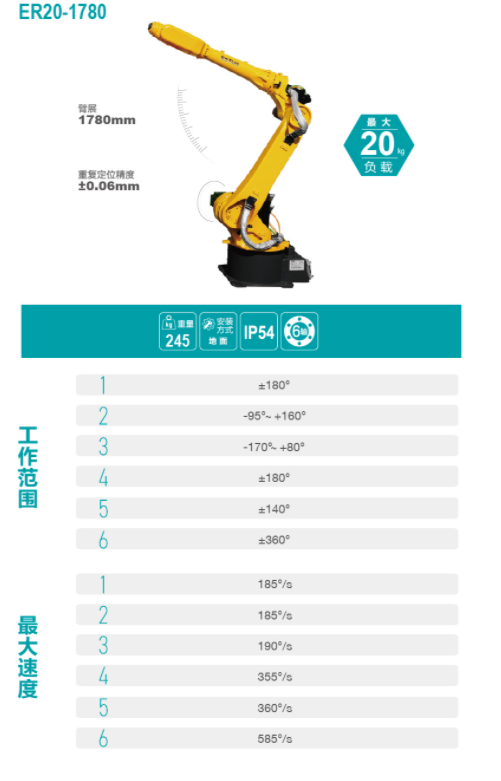 轴数6轴 | 精度0.06mm | 工作域1780mm |