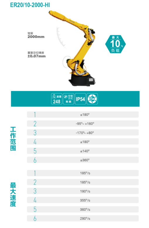 轴数6轴 | 精度0.07mm | 工作域2000mm |
