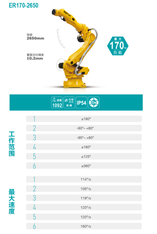 轴数6轴 | 精度0.2mm | 工作域2650mm |