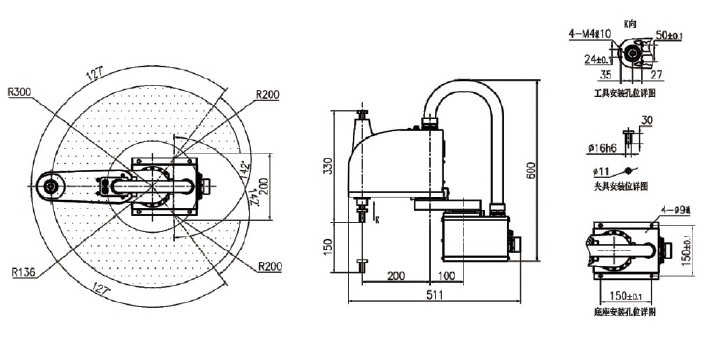 该机器人是新时达具有完全自主产权的多关节四轴机器人,采用高性能控制器,可控制机器人实现高速点位运动,空间直线插补运动、空间圆弧插补等功能,适用于搬运、上下料、点焊、涂胶等多种工业场合。