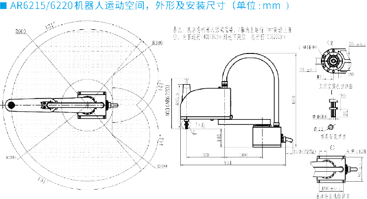 采用新时达高性能控制器,可控制机器人实现高速点位运动,空间直线插补运动,空间圆弧插补等功能;