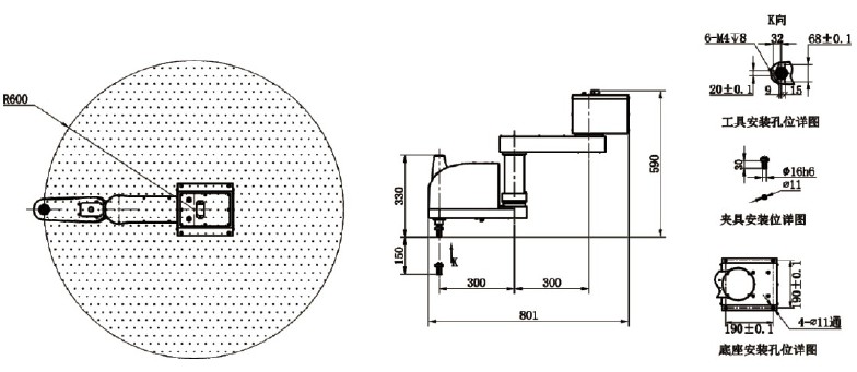 轴数4轴 | 工作域600mm | 负载3kg |