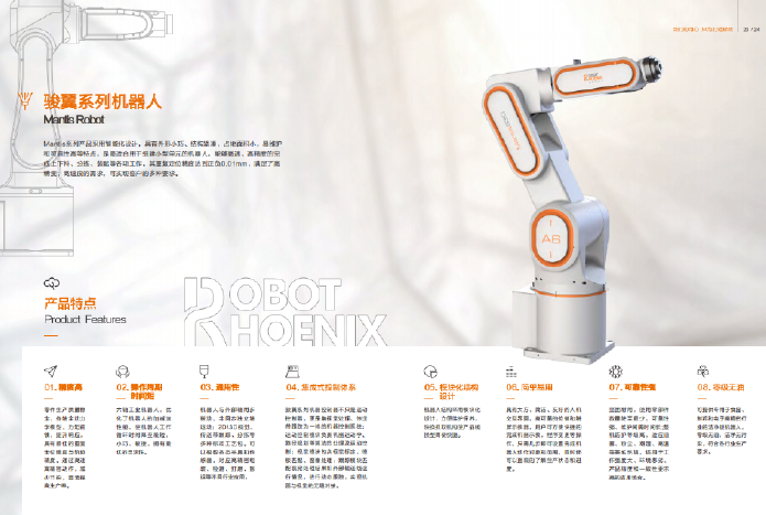 Mantis系列产品采用智能化设计,具有外形小巧、结构紧凑,占地面积小,易维护和可靠性高等特点,是最适合用于组建小型单元的机器人,能够高速、高精度的完成上下料、分拣、装配等各项工作。其重复定位精度达到正负0.01mm,满足了高精度,高速度的需求,可实现客户的多种要求。