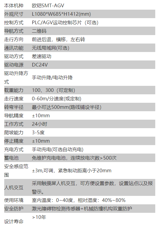 SMT上下板机用AGV规格参数: