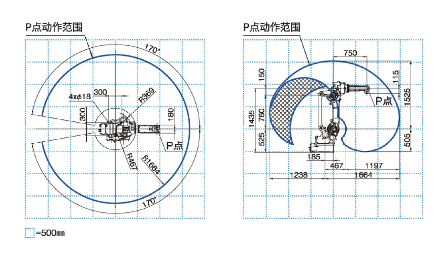 机器人动作范围截面面积 | 3.32m²×340° | ||