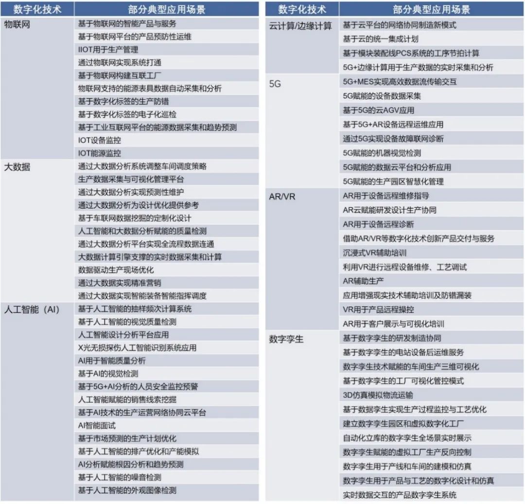 表 1 领航企业数字化技术典型应用