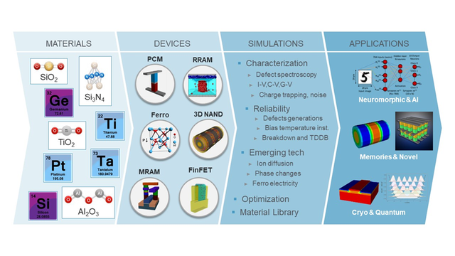 除了设计和制造环节之间的协同外,材料因素也非常重要。应用材料公司在DTCO的基础上提出要实现materials to device simulation,原因在于器件尺寸不断缩小、更多复杂3D几何形状被采用以及新材料的引入,半导体器件仿真变得越来越复杂。这就需要采用新的多物理场多尺度仿真工具,将器件性能与材料特性联系起来,系统研究材料、几何形状以及工艺的变化将如何影响器件的电学性能,以此优化器件设计。