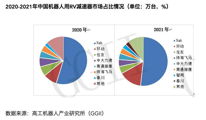 全球减速器市场被日本垄断多年。RV减速器巨头纳博特斯克占据了全球60%的减速器市场,而谐波减速器领先者哈默纳科紧随其后,占据了15%的市场。