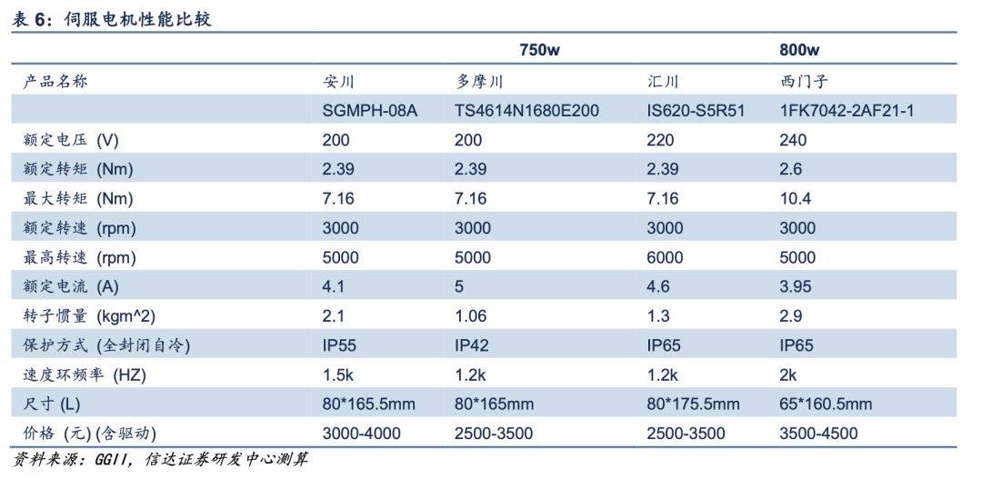以安川电机为代表的日系伺服,经过几十年的技术沉淀,产品稳定性高;以西门子为代表的欧系产品,强调高度集成化,将伺服系统与上游控制系统深度结合,电机体积更小、运动控制精度更高;而以汇川为代表的国产伺服,主要依靠性价比优势,在中低端领域满足国内中小企业的需求。