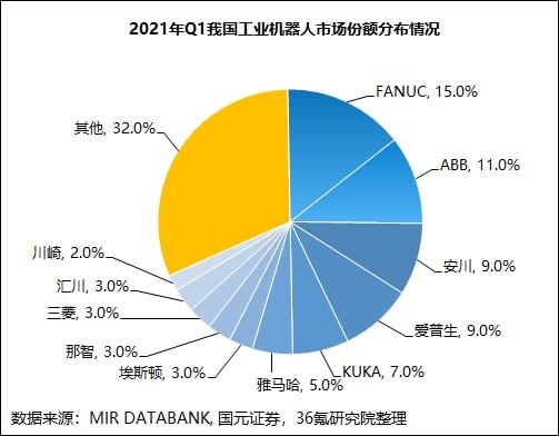 成熟的工业机器人厂商通常会自行开发控制器,以保证统一性、稳定性,维护技术体系。因此,控制器和机器人本体的市场份额基本保持一致。这也就意味着,在这一领域保持领先的仍然是传统的工业机器人本体“四大家族”。
