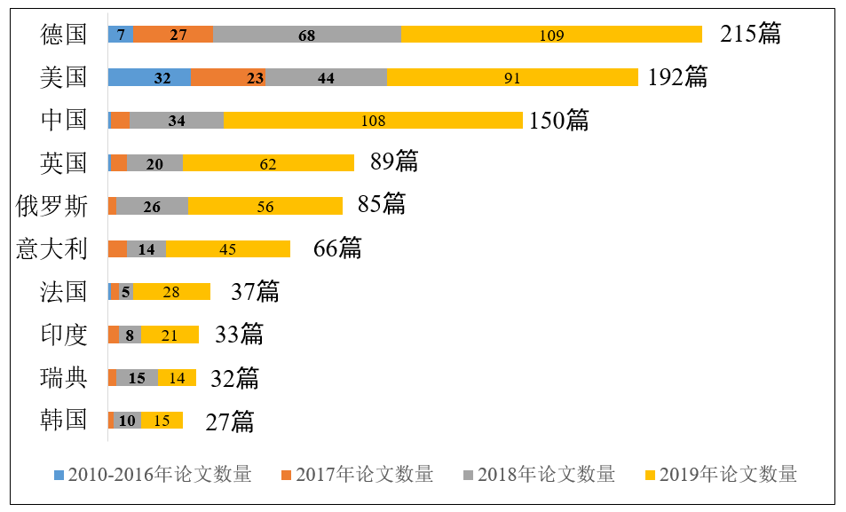 如图所示,德国、美国和中国在数字孪生论文发表数量上,近3年均处于前三名。从时间维度分析,中、美、德3国数字孪生研究可以分为以下3个阶段:
