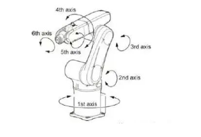 机器人制造商倾向于使用各自略有不同的轴或关节命名。基本上,第一关节(J1)是最接近机器人底座的那个。接下来的关节称为J2,J3,J4和依此类推,直到到达手腕末端。而其他的Yaskawa/Motoman公司则使用字母命名他们机器人的轴。